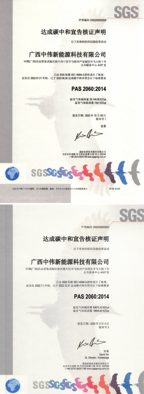 SGS是國際碳排放管理公認的測試、檢驗和認證機構,此次認證由SGS依據ISO 14064-3:2019標準,于2022年9月與2023年2月兩次對中偉欽州產業基地生產運營過程中排放產生的溫室氣體數據進行統計與核查,各項數據均經過詳細評估、統計與現場審核,同時對相關數據聲明、減排計劃及中和方案進行嚴謹細致的文件審查、現場評審和技術評審,最終符合PAS 2060:2014的標準要求,證實中偉欽州產業基地達成碳中和。