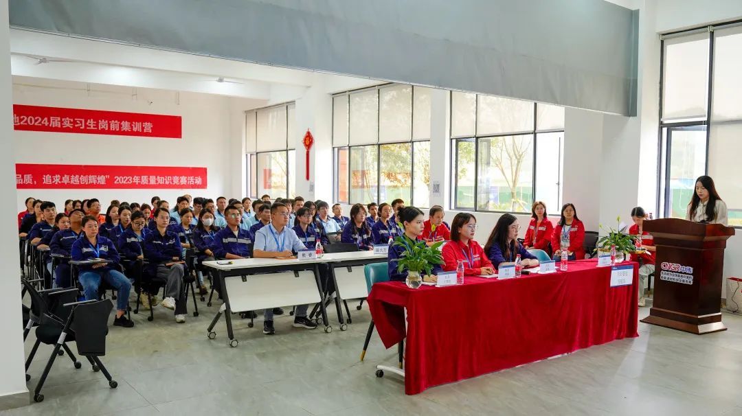 通過前期全員入圍賽及各代表單位的層層選拔,寧鄉(xiāng)產(chǎn)業(yè)基地-壯志凌云隊(duì)、銅仁產(chǎn)業(yè)基地-夢幻隊(duì)、欽州產(chǎn)業(yè)基地-創(chuàng)新隊(duì)、開陽產(chǎn)業(yè)基地-突破隊(duì)、研究院-爭先隊(duì)、總部中心-超越隊(duì)代表各單位決戰(zhàn)總決賽。本次競賽活動共分個(gè)人必答、黃金60秒、風(fēng)險(xiǎn)題三個(gè)環(huán)節(jié)進(jìn)行。題庫范圍涵蓋了前期學(xué)、練、考過程中的質(zhì)量體系制度和管理標(biāo)準(zhǔn)、質(zhì)量工具等知識內(nèi)容。