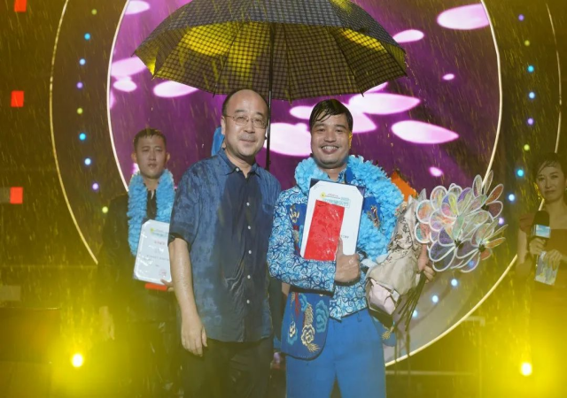 最終,龔豪獲得大眾評委最多投票,榮登2023中偉音樂節(jié)總冠軍,王楠、龍翔分別獲得比賽的亞軍、季軍。鄧光明、閻冬、趙丹分別為冠、亞、季軍頒獎,并向他們表示祝賀。