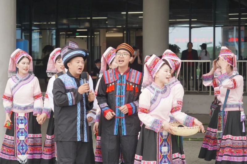 活動(dòng)以山歌對(duì)唱的形式進(jìn)行。參加對(duì)歌比賽的員工們,身著民族服飾熱情開唱。《好歌才》《什么水面打跟斗》《山歌好比春江水》......一首首洋洋盈耳、遏云繞梁的歌曲,引得大家紛紛駐足欣賞,現(xiàn)場(chǎng)氣氛熱鬧非凡。