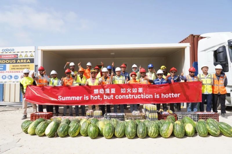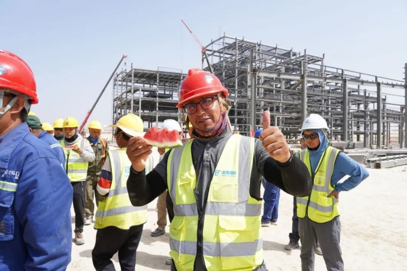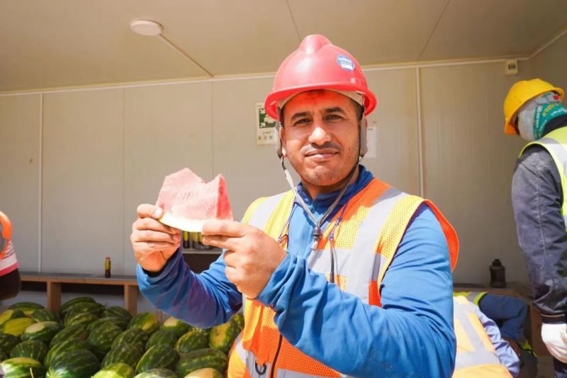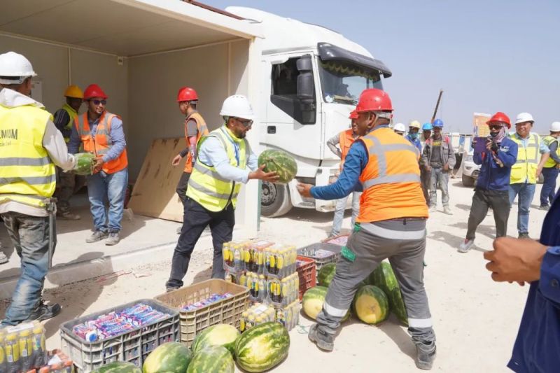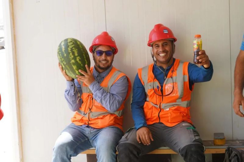 盡管高溫炙烤,項(xiàng)目現(xiàn)場(chǎng)的工人們?nèi)詧?jiān)守一線、不畏酷暑、辛勤工作,確保工程建設(shè)的順利進(jìn)行。此次,摩洛哥項(xiàng)目組為施工人員準(zhǔn)備了500瓶酸奶、500瓶涼茶、2000斤西瓜等防暑降溫物品,按各單位人數(shù)送至施工現(xiàn)場(chǎng)分配發(fā)放。