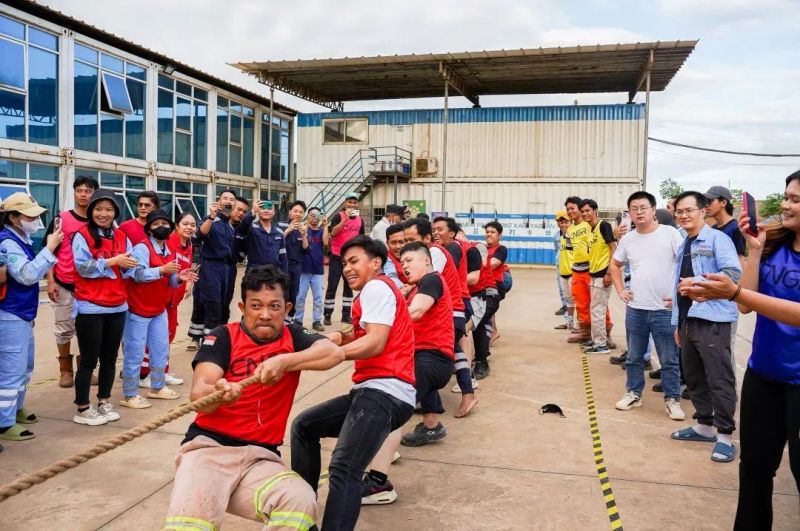 旱地龍舟賽跑、集體跳繩、拔河比賽等團(tuán)體項(xiàng)目將活動(dòng)推向了高潮,中印尼員工現(xiàn)場(chǎng)抽簽臨時(shí)組隊(duì),相互配合共同完成挑戰(zhàn),參賽選手肩并肩,手挽手,擰成一股繩,現(xiàn)場(chǎng)觀眾熱情如火,助威聲此起彼伏,團(tuán)隊(duì)游戲的火熱氛圍將現(xiàn)場(chǎng)的每一個(gè)人都聯(lián)結(jié)在了一起。