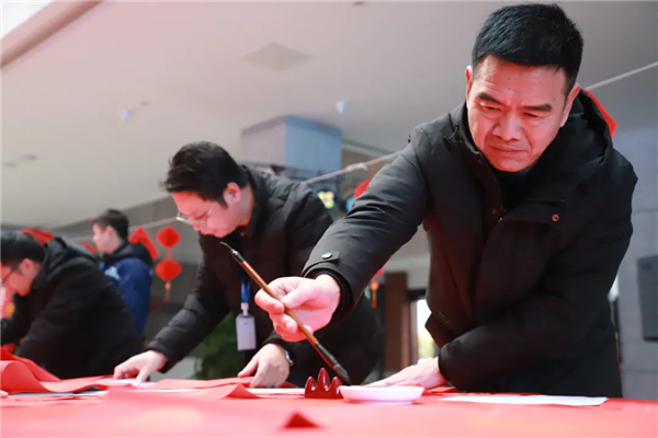 次日,來自寧鄉市書法家協會的書法大家們受邀來到中部產業基地,參加“翰墨中偉”寫春聯送祝?;顒??;顒蝇F場,書法家們用紅紙黑字、筆墨紙硯傳遞著新春的溫暖與祝福。