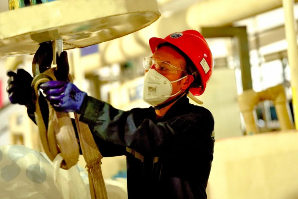 能阻擋1000攝氏度焊接火花高溫的,不僅僅只有防護服,還有一顆奮斗者的心。酷熱的盛夏,寧鄉產業基地設備部員工用汗水打磨細節,用責任守護安全,用匠心雕琢品質。維修工程旭紅代表設備部喊出迎戰高溫口號:雖然天氣炎熱,但我們一絲不茍,嚴格按照規章制度操作。